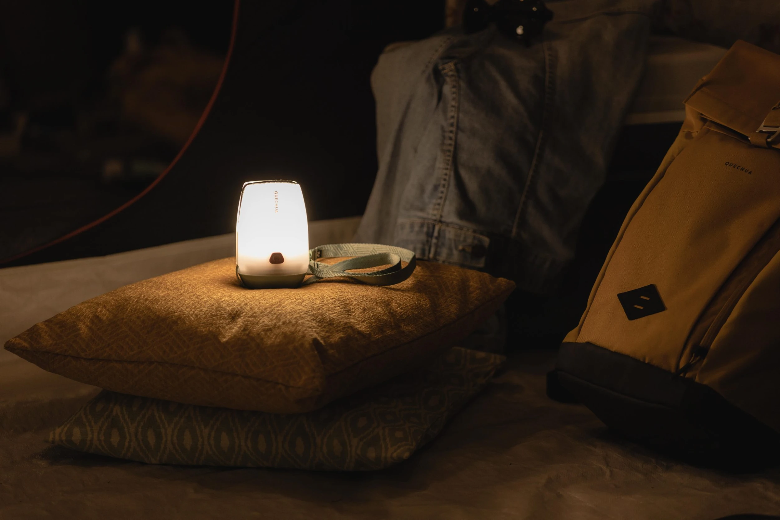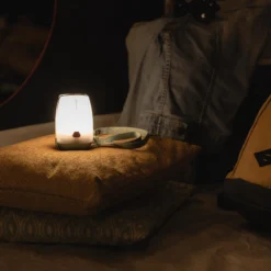 This rechargeable BL 100 lamp was designed to comfortably light a 2-person area. Can be used outdoors, in tents, on a campsite, etc. Our motivation Bright, compact, and versatile lighting (100 lumens) with 3 light modes. The modular strap makes it easy to hang anywhere. Rain-resistant.