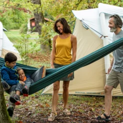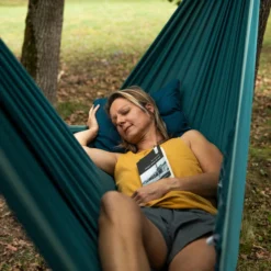 The Comfort Hammock is designed for two campers.Practical and versatile, use it for camping or other nature activities. Why? Treat yourself to a versatile, comfortable hammock to sleep almost anywhere! Lightweight and practical, it sets up in no time.