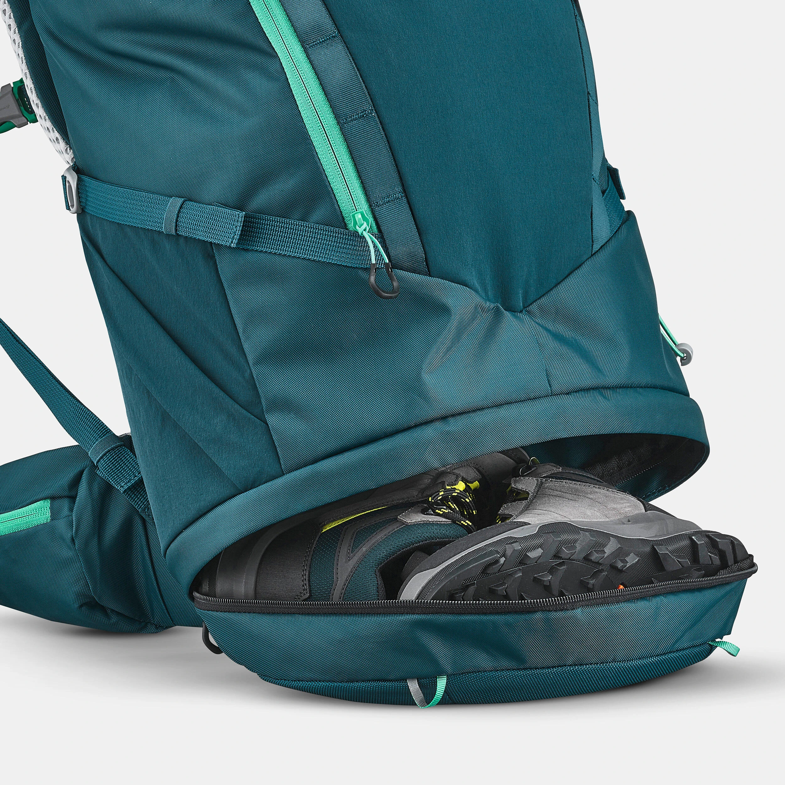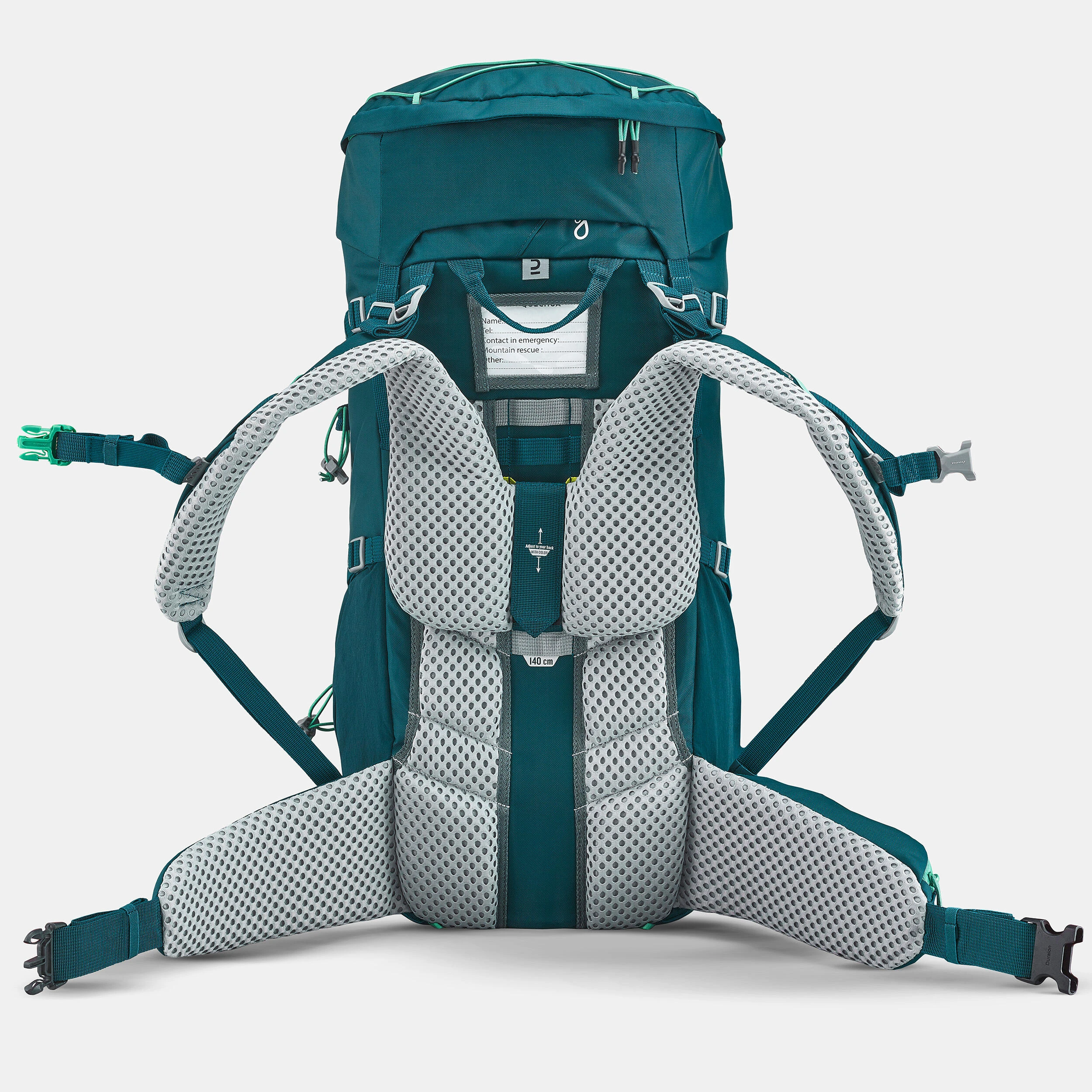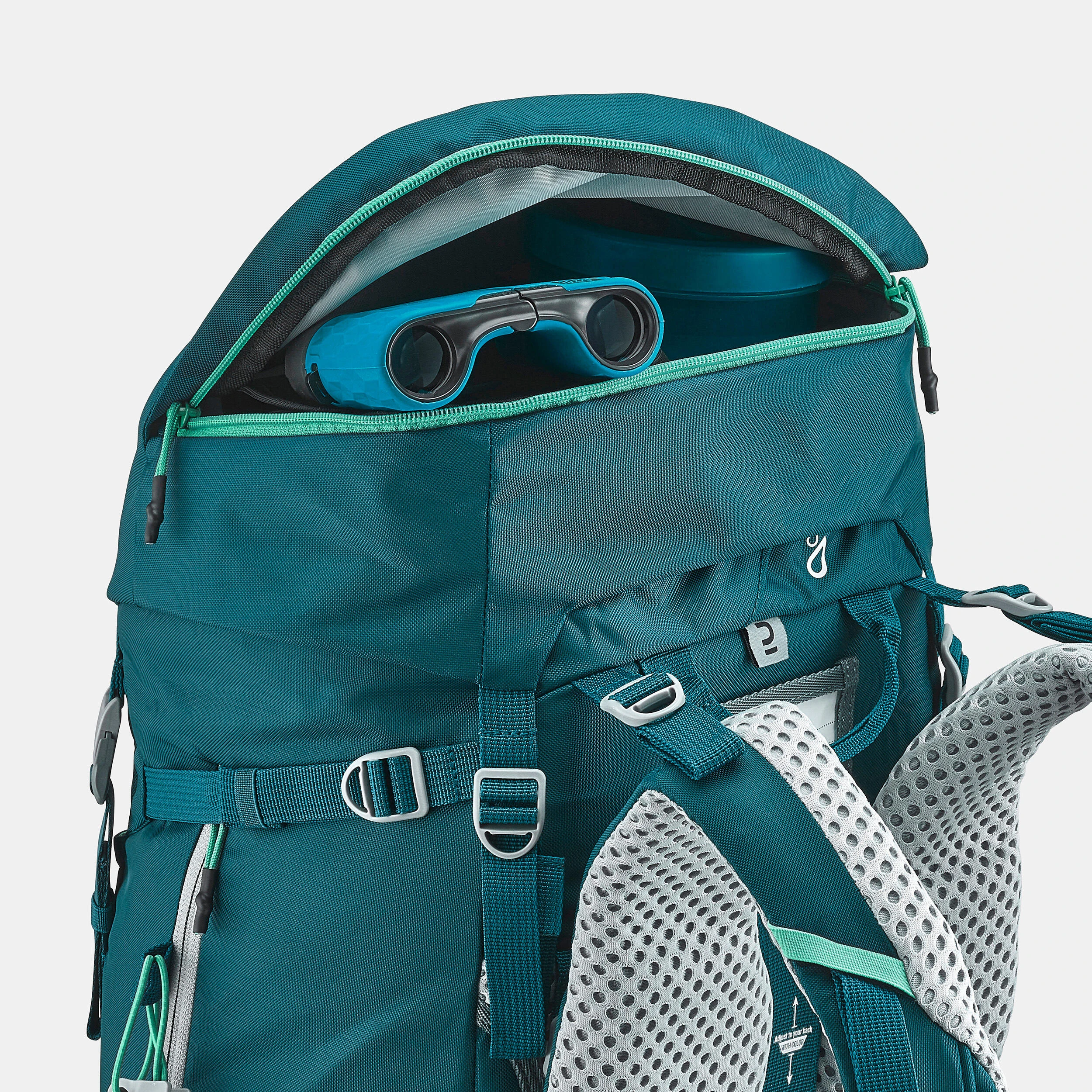 This hiking backpack adapts to your child’s body shape. Ideal for several days of adventures, with a capacity of 40 L + 10 L (9 gal + 2 gal). We integrated some practical storage areas and a side opening for easy access to the contents.