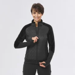 This hybrid fleece jacket was designed for regular hikes in cool weather. The body-mapping technology offers warmth and breathability. A hybrid jacket with body-mapping technology that adds warmth where you need it. Windproof component on exposed areas and targeted breathability for better temperature regulation.