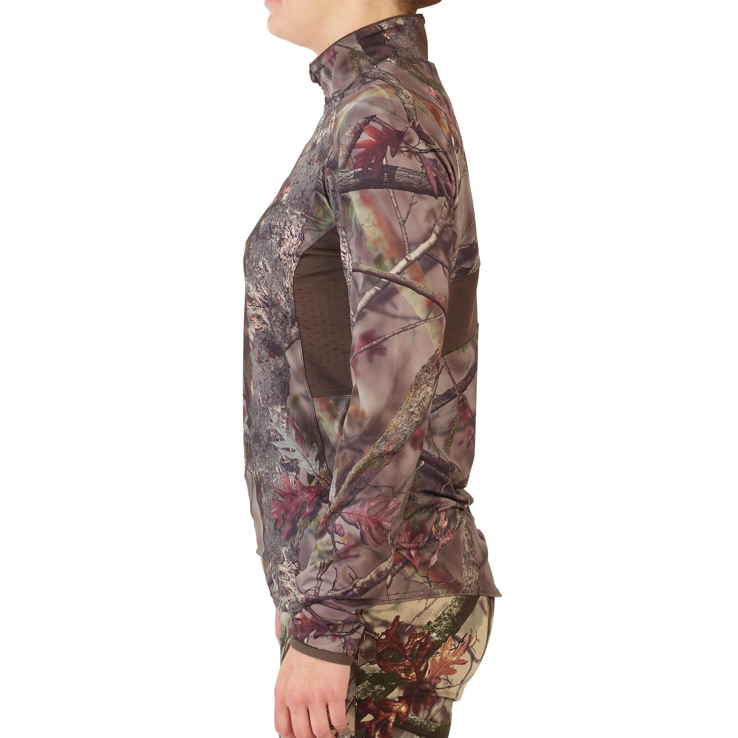 Our engineers and designers have developed this T-shirt for women hunting big game on a drive hunt, stalking or still hunting in dry weather. Lightweight and breathable, with micro-ventilated inserts under the arms and back, and a large zipped opening for easy ventilation.